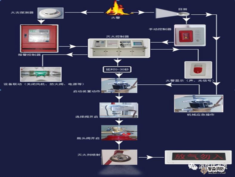1)自動啟動(火災(zāi)探測器聯(lián)動啟動系統(tǒng))。