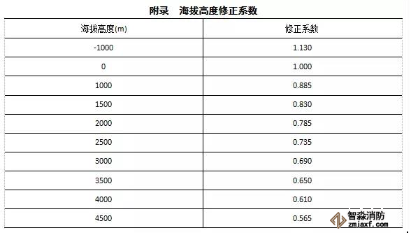 第四步:查出您所在地區(qū)的海拔修正系數(shù)K,K值可根據(jù)規(guī)范GB50370-2005 附表查詢。