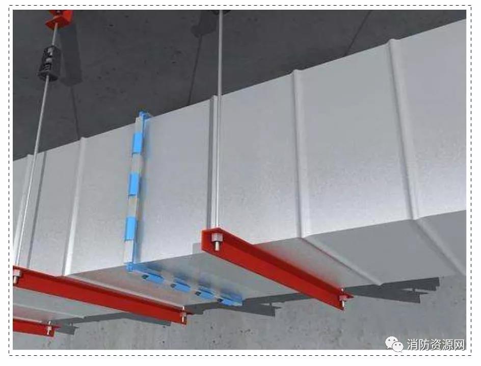 以下示例為薄鋼板法蘭連接風(fēng)管,這種彈簧夾的固定方式在防排煙風(fēng)管中不許可。