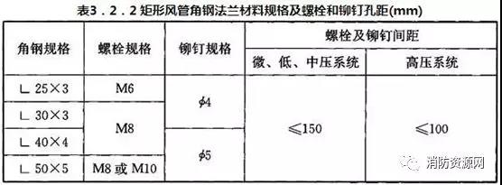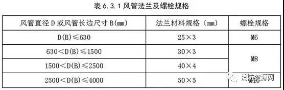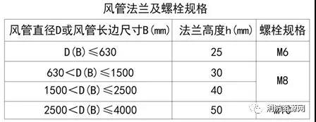 二、金屬風(fēng)管采用法蘭連接時,法蘭材料規(guī)格應(yīng)按《建筑防煙排煙系統(tǒng)技術(shù)標(biāo)準(zhǔn)》表6.3.1選用,風(fēng)管接口的連接應(yīng)嚴(yán)密、牢固,法蘭墊片應(yīng)為不燃材料(A級),厚度不應(yīng)小于3mm,不應(yīng)凸入管內(nèi)和法蘭外。螺栓孔的間距不得大于150mm,矩形風(fēng)管法蘭四角處應(yīng)設(shè)有螺孔。(6.3.1