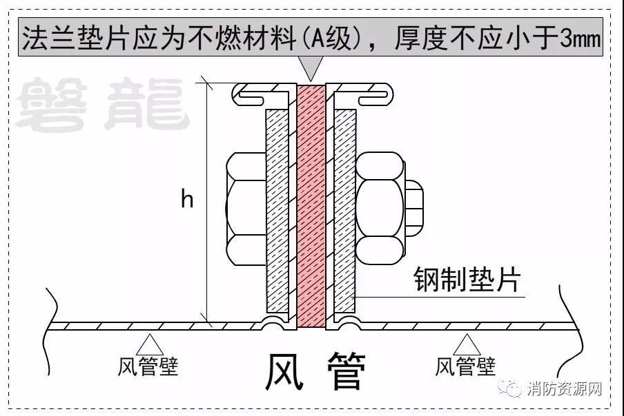 二、薄鋼板法蘭風(fēng)管應(yīng)采用螺栓連接,風(fēng)管接口的連接應(yīng)嚴(yán)密、牢固,法蘭墊片應(yīng)為不燃材料(A級),厚度不應(yīng)小于3mm,不應(yīng)凸入管內(nèi)和法蘭外。