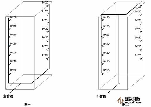 2.2 對封閉式豎向立體車庫在設(shè)計主管道進(jìn)口時應(yīng)該采用圖一的方式,但大多設(shè)計院采用的是圖二的方式進(jìn)管。