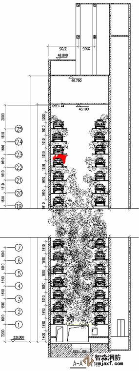 2.1 立體停車庫設(shè)置二氧化碳氣體滅火系統(tǒng)在《汽車庫、修車庫、停車場設(shè)計防火規(guī)范》中已有相應(yīng)規(guī)定,由于立體停車庫是一個獨立的大空間,采用全淹沒單元獨立方式滅火是最為理想的,設(shè)置高壓系統(tǒng)而不設(shè)置低壓系統(tǒng)原因有二:其一、低壓系統(tǒng)壓力太小,要爬升到40多米高度再往下噴放藥劑顯然壓力不足;其二、低壓系統(tǒng)的大型儲罐只能放在一樓或二樓,這樣有利于日后補(bǔ)充藥劑,若為保證壓力而把儲罐放的太高,二氧化碳槽車根本無法靠近,充裝藥劑就很難實現(xiàn)。