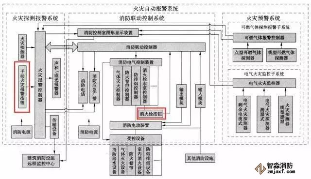 手報(手動火災(zāi)報警按鈕)是作為火災(zāi)探測報警系統(tǒng)的一種觸發(fā)裝置,是通過人為手動方式產(chǎn)生火災(zāi)報警信號的器件,信號是傳遞給火災(zāi)報警控制器;而消報的動作信號是消火栓系統(tǒng)的觸發(fā)信號,信號是給消防聯(lián)動控制器的。雖說現(xiàn)在都是聯(lián)動型的火災(zāi)報警控制器,但邏輯還是有差別的,如下圖。